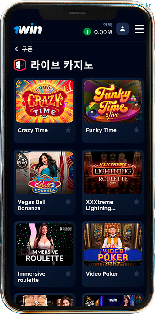 1win 앱은 160여 개의 유명 업체에서 제공하는 12,000개 이상의 게임으로 구성된 방대한 카지노 컬렉션을 제공합니다. 한국 플레이어는 클래식 및 3 차원 슬롯, 테이블 게임, 카드 게임, 라이브 딜러 게임 등 다양한 옵션을 즐길 수 있습니다.